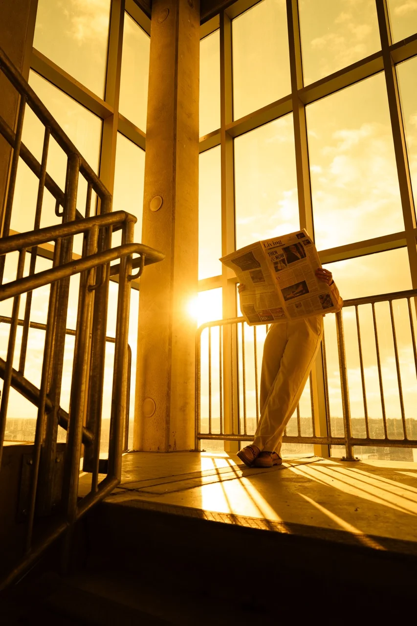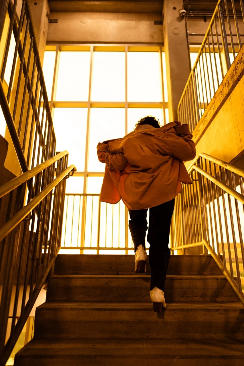 During a photo walk with Photo Jam, I discovered this architectural gem — an industrial stairwell bathed in golden afternoon light. The location's potential immediately caught my eye, and I knew it would make for a perfect fashion shoot setting. Working with the model, we created a series that plays with light, shadows, and architectural elements.