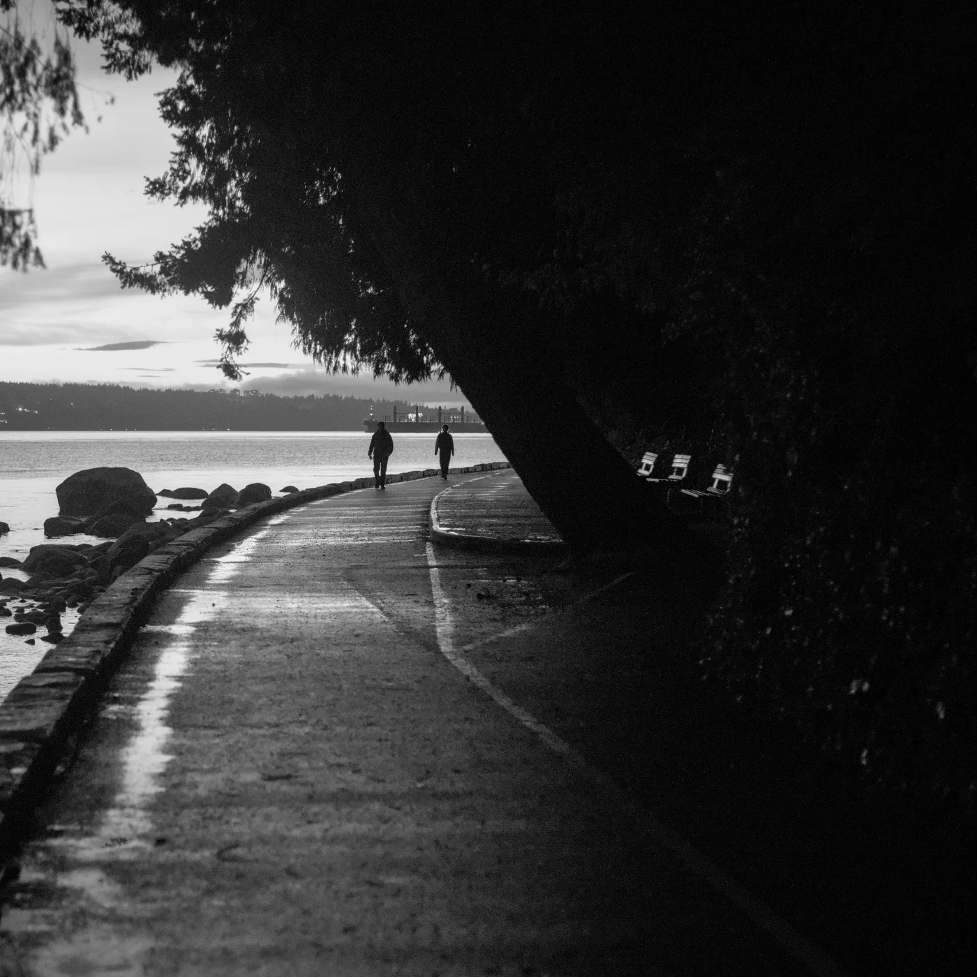 After lunch out and coffee in, we took an evening walk through Stanley Park as the sun went down. I really enjoyed taking photos as our crew walked along the path. There was just great light bouncing off the water. I've always been someone who loves silhouettes, and the light reflecting off the water gave a somewhat atypical silhouette.