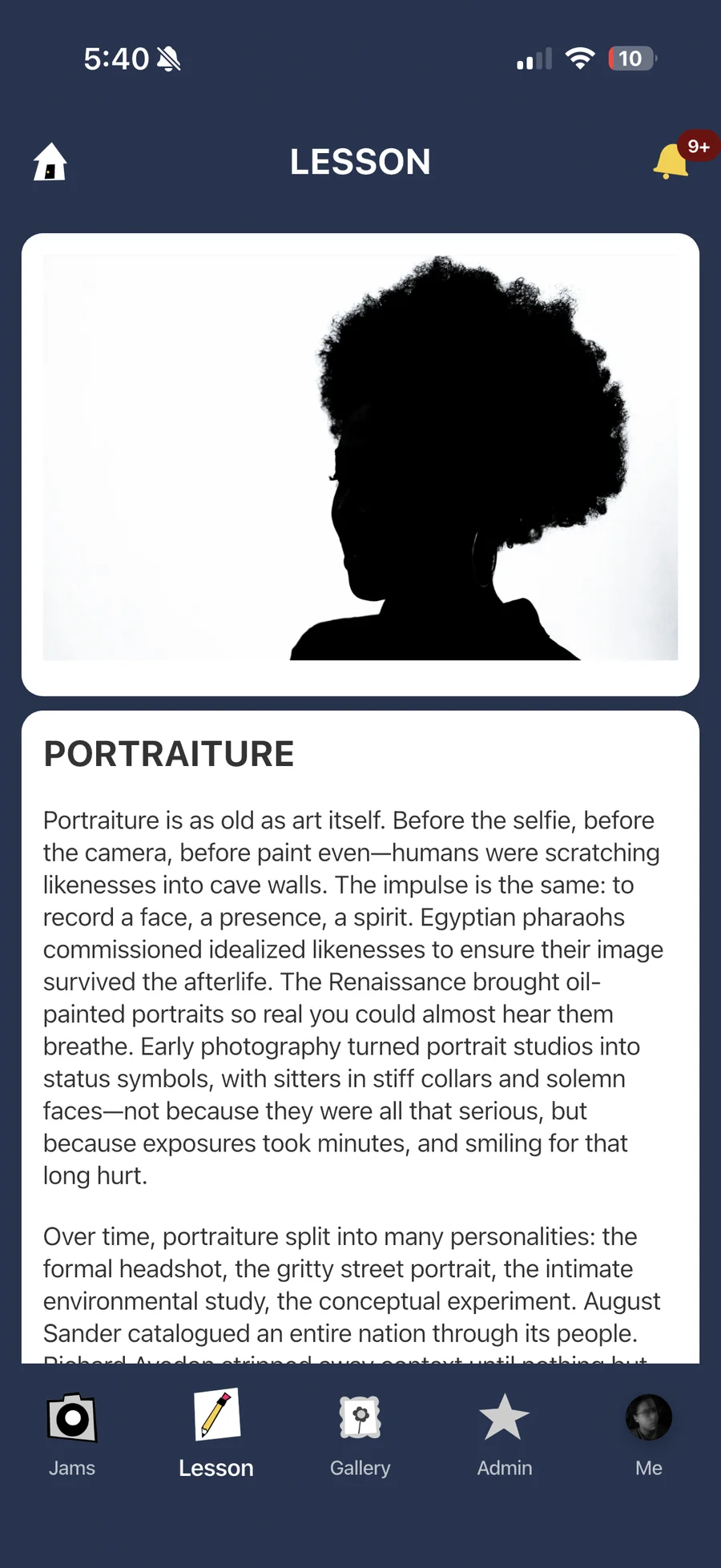 - Weekly Lessons: Markdown-rendered photography tutorials with image examples and learning objectives